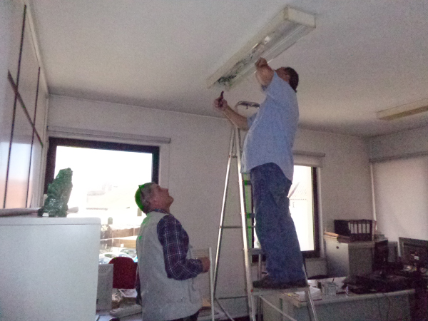 O edifício dos paços do concelho das Caldas da Rainha integra este projecto-piloto e já está praticamente concluída a substituição das antigas lâmpadas de halogénio por LEDS.