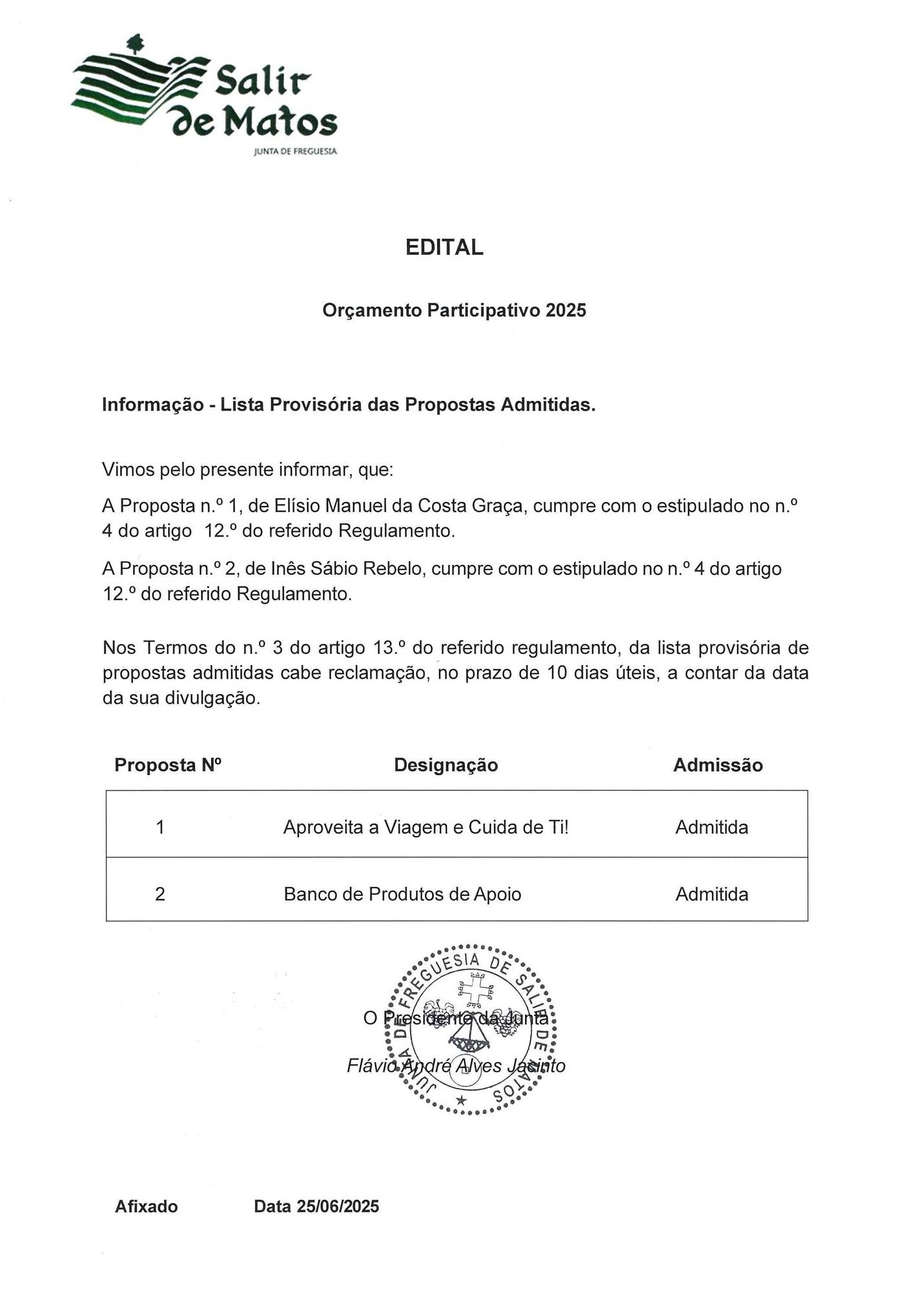 Encontra-se afixada a Lista Provisória da Propostas Admitidas!